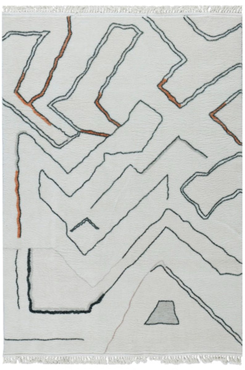 The Cadeworth Rug features printed abstract design in cream, black, gray, and spice. Polyester. 9mm pile. Knotted fringe edge. Backed with TPR, polyester, and cotton. Machine washable. Rug pad recommended.Read More