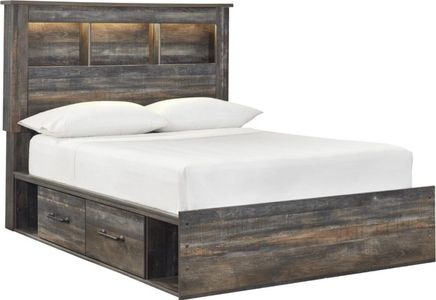 Includes bookcase headboard, footboard, 2 underbed storage units, rails and wood roll slats