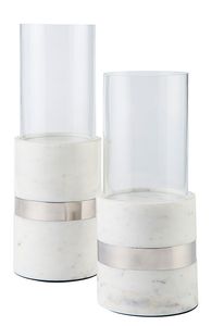 Talk about upscale yet down to earth. These candle holders pair white marble with nickel-tone plated metal bands for an opposites-attract sensibility. Perfect for your contemporary design tastes.Read More