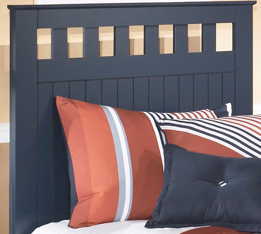 Complete your child’s bed with the replicated beadboard styling and open slat cutouts of the Leo twin panel headboard.