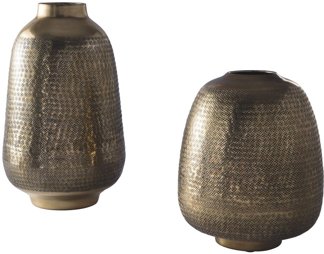 Give your home’s mantles, tabletops, or entryways some luster with the Miette collection from Signature Design by Ashley®. The brass-tone finish and hammered effect on the traditional silhouette add a trendy and updated feel, perfect in any space.