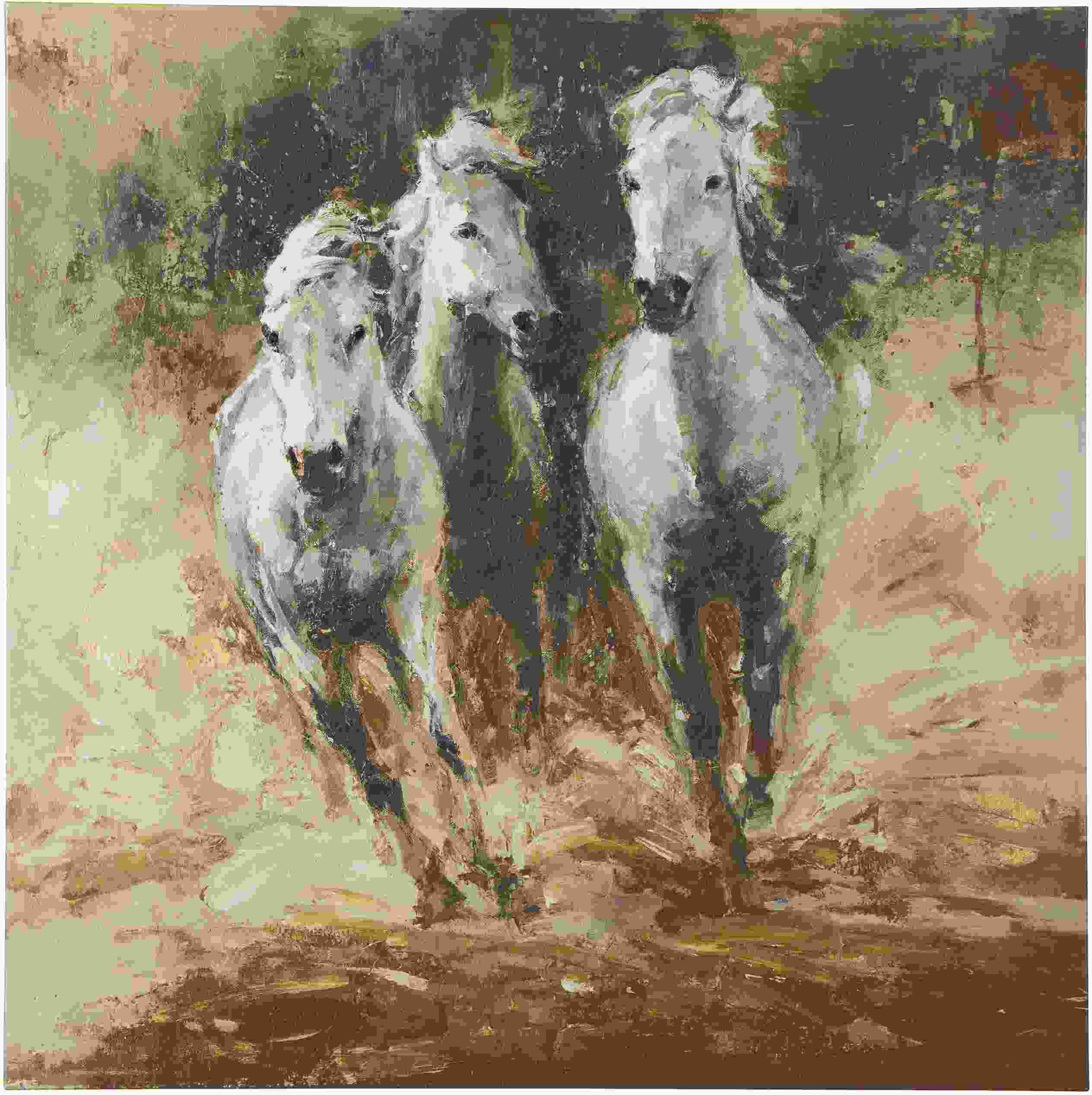 An exquisite giclee reproduction, this wrapped canvas wall art is a mane attraction for lovers of rustically refined style. Splashes of colour vividly capture the wake of wild horses in their element.